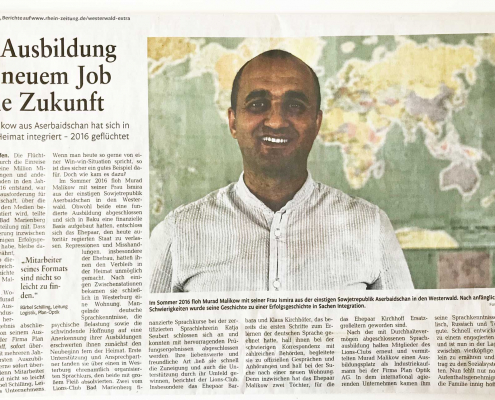 Familie Malikow aus Aserbaidschan ist im wahrsten Sinne des Wortes erfolgreich angekommen: Nach ihrer Flucht aus dem heute streng autoritär regierten Land fand die junge Familie von Murad Malikow ein neues Zuhause im Westerwald. Durch vom Lions…